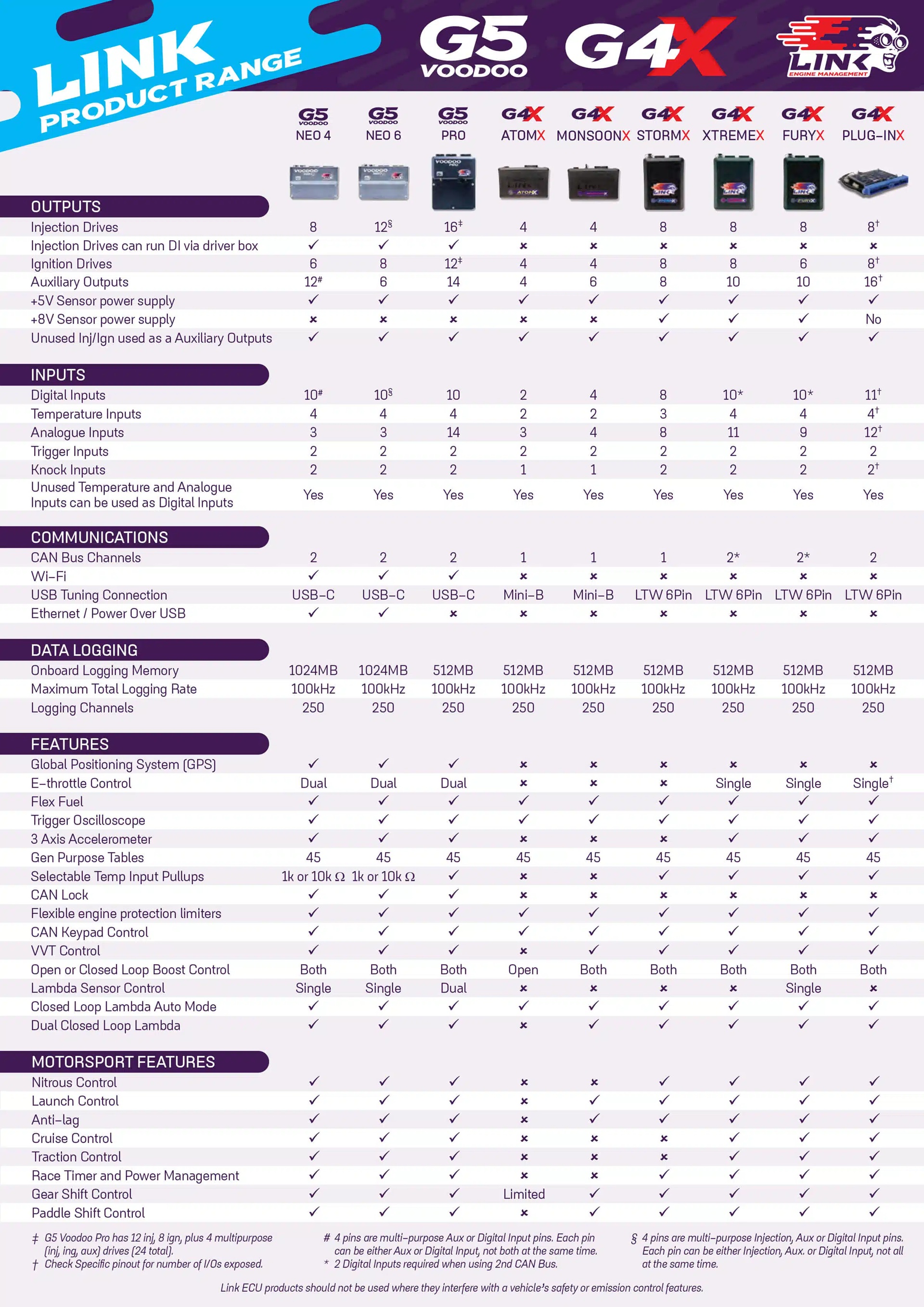 Link�s G4x Fury, Xtreme ECU G4+ & G4X, Storm ECU G4X, Thunder ECU G4+ are all tried and tested to provide enhanced engine performance on a wide variety of vehicle applications.