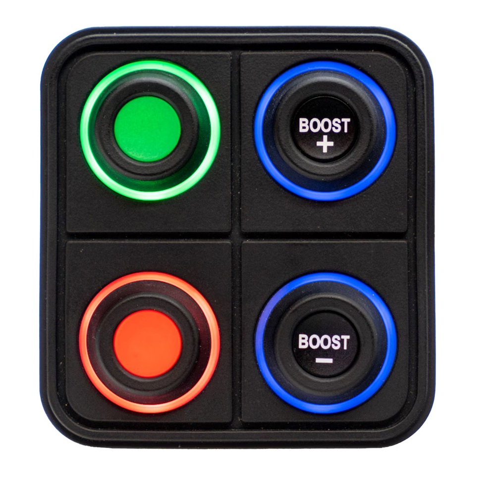 Custom button inserts and configurable RGB indicator rings per button allow for extremely flexible set-ups. The keypad is designed for ultimate reliability - IP67/IP69K water and dust resistant, -40 to +70 operating temperature range, UV 400hrs, salt spray resistant and switches rated to 3 million operations. Can be installed both inside and outside, perfect for street, track and off-road use.